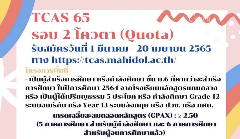 ทางเว็บไซต์ tcas.mahidol.ac.th